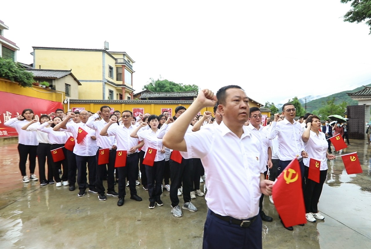 “我志愿加入中國共產黨……”在公司黨委書記、董事長吳勇帶領下,70余名黨員整齊列隊,面對鮮紅的黨旗,莊嚴宣誓。隨后,列隊排成“100”的形狀,以慶祝建黨100周年。