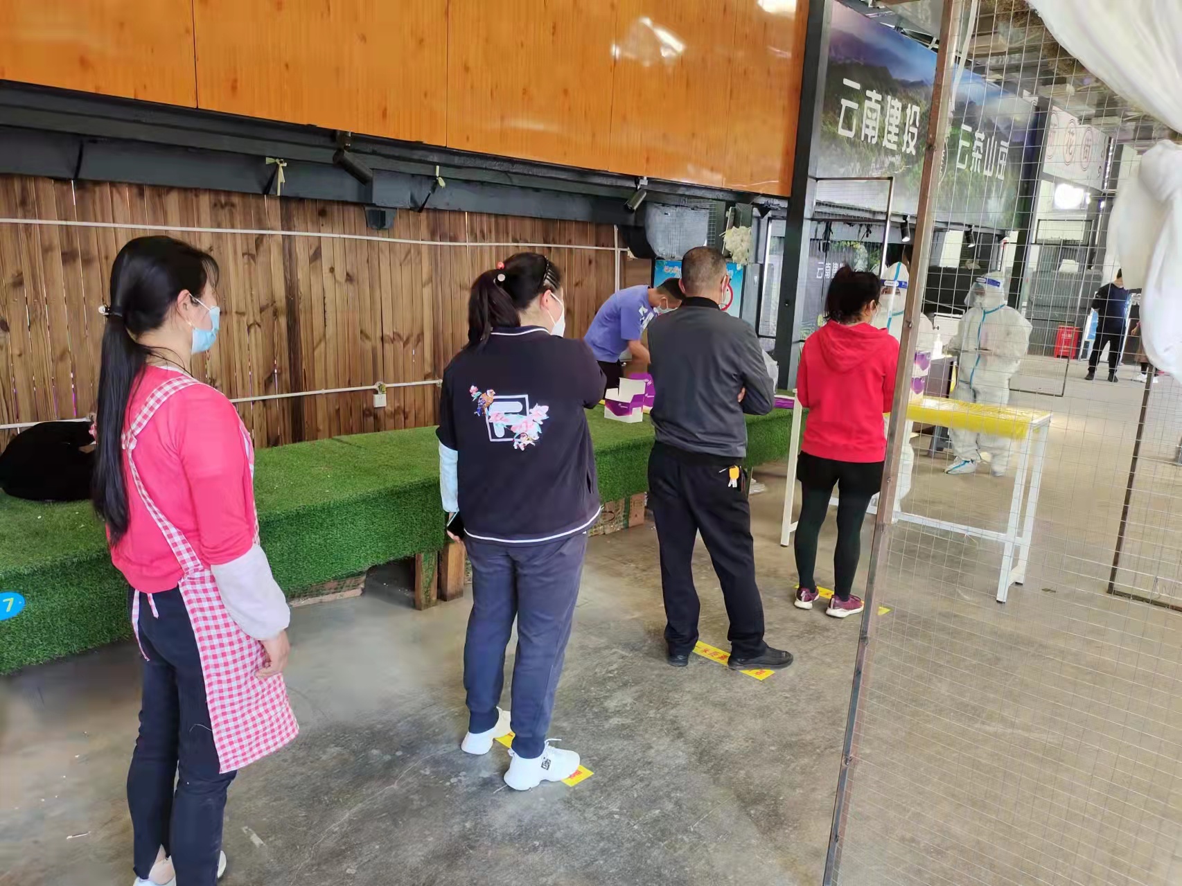 疫情當前,大觀篆新農貿市場積極履行社會責任,組織市場1600余名從業人員開展全員核酸檢測,確保各市場從業人員應檢盡檢。為避免人員集聚,讓全員核酸檢測安全有序開展,工作人員耐心引導商戶排隊,認真勸導商戶遵守防疫流程、戴好口罩、確保安全距離,讓商戶核酸檢測時更加安心、高效、舒心。疫情防控人人有責,大觀篆新農貿市場主動扛起社會責任,以實際行動彰顯責任擔當。