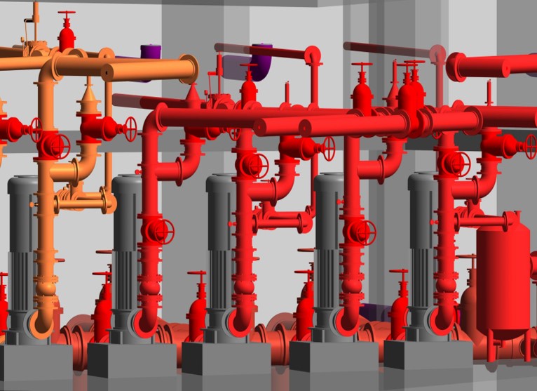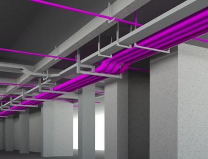 運用BIM技術對地下室機房、管線進行綜合排布,明確設備安裝位置、標高和各專業管線走向,采用聯合支架方式架設解決了管線復雜、布置難度大的問題。