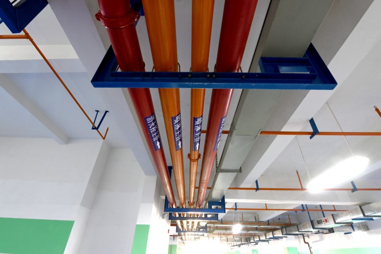 管道排布合理、標識清晰,共用支架簡潔實用、美觀