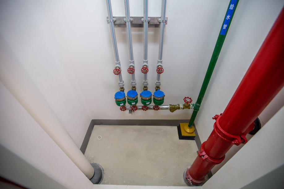 管井穿樓板封堵密實,管線間距均勻、排布整齊、接口嚴密,標識清晰