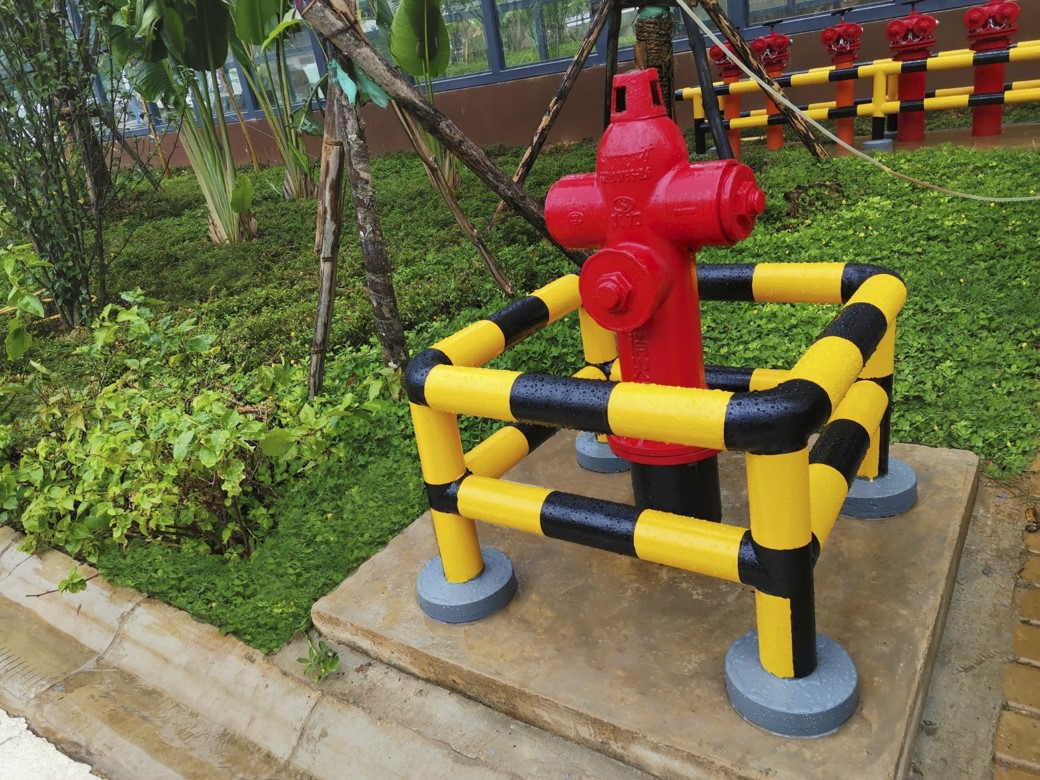 室外消火栓及水泵接合器外圍設置防撞護欄,安裝橫平豎直,排列整齊