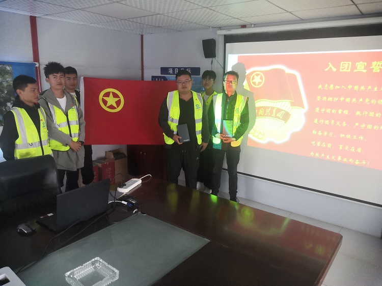 第三項目經理部團支部在西南林業大學石林職業技術學院基礎設施建設項目(第二標段)項目開展黨史學習教育活動,會議同時舉行了超齡離團儀式,團員、青年在團旗下再次唱響團歌、重溫入團誓詞,團支部還為兩名超齡團員送上離團紀念品。