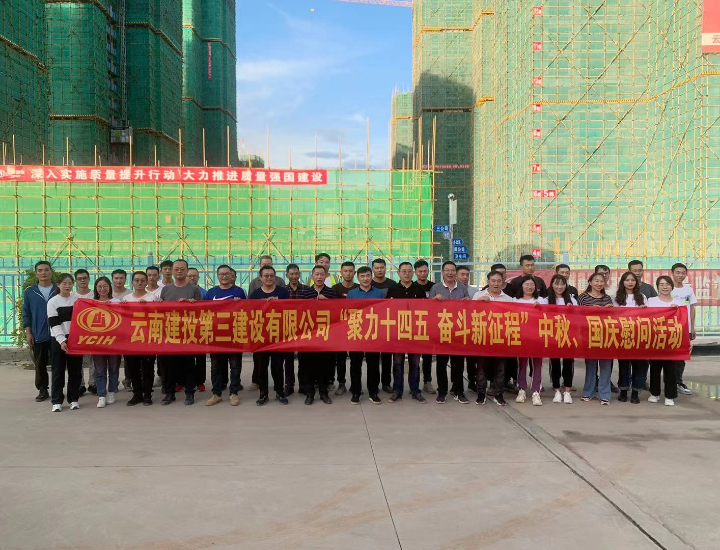 9月19日,公司安全總監孔維國一行到昭通中梁項目經理部承建的中梁拾光里項目,第三直管項目部承建的魯甸縣縣城環城公路項目,第十一直管項目部承建的巧家縣公安局交通警察大隊業務用房項目開展雙節慰問活動。活動以“聚力十四五,奮斗新征程”為主題,三個項目部職工歡聚一堂,活動中孔維國對各個項目的工程建設和職工生活情況進行了詳細了解,并代表公司向全體人員送上節日的問候與祝福,他表示,各直管部要堅定不移的跟黨走,落實好安全防范工作,預防為主、綜合治理。此次慰問活動以擊鼓傳花的方式,大家在活動中紛紛展示著自己的才藝,在歡聲笑語中感受著節日的祝福與關懷。