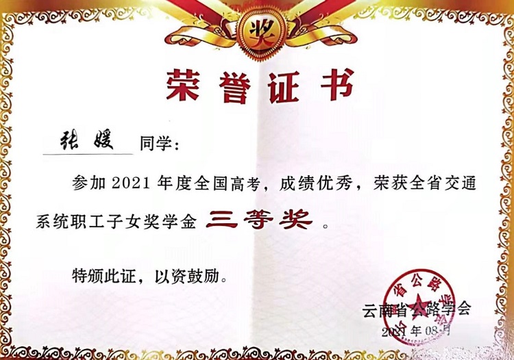 自1992年以來,為獎勵全省交通系統職工中的優秀子女,云南省公路學會持續開展一年一度的全省交通系統職工子女獎學金評審工作。今年職工子女獎學金理工類申報評獎起分線為610分,文史類申報評獎起分線為630分。