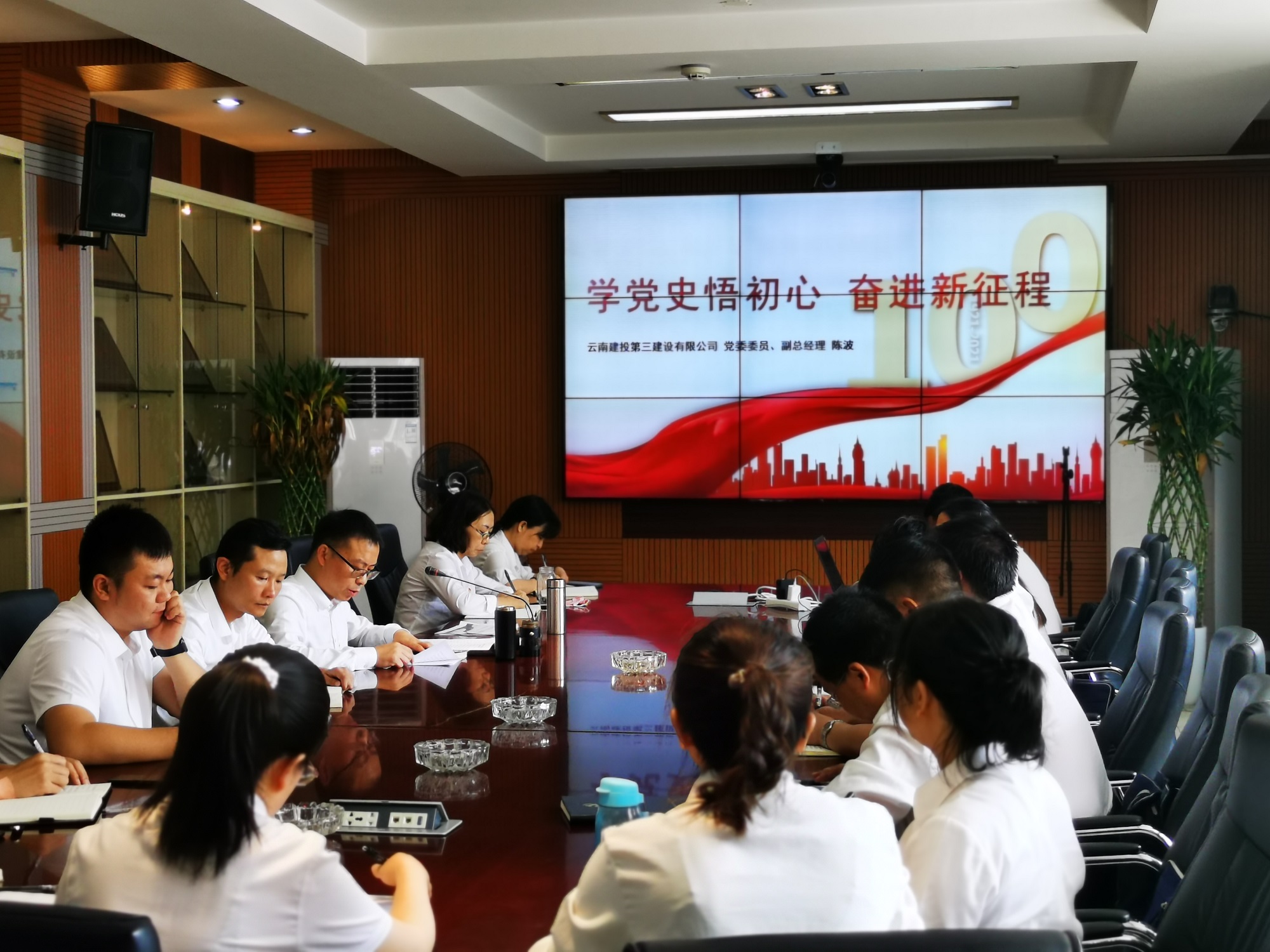 6月26日,公司黨委委員、副總經理陳波以《學黨史悟初心 奮進新征程》為題,在公司機關第二會議室講授黨史學習教育專題專題黨課。公司市場開發部、第一項目經理部、第五直管項目部、第七直管項目部、第十一直項目管部黨支部在昆27名黨員參加此次專題黨課。