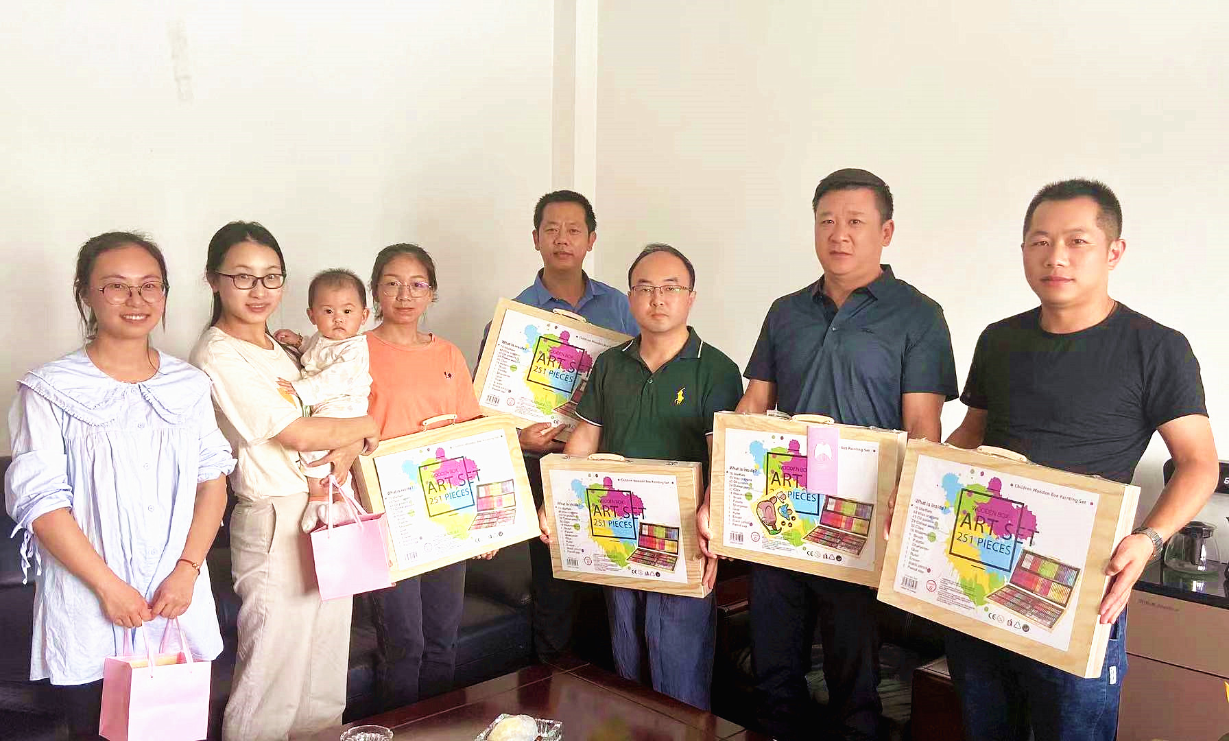 工會主席朱玉梅帶領職工學習了解有關兒童的相關法律知識,并對職工子女生活、學習及身體健康狀況等方面進行關心慰問。活動最后,根據職工子女性別、年齡送上精美禮物。