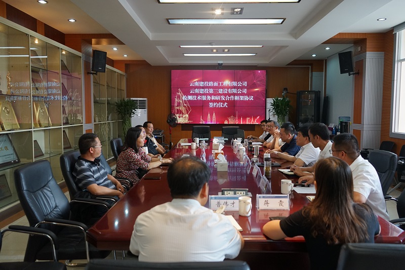 5月19日,公司與云南建投路面工程有限公司簽署戰(zhàn)略合作協(xié)議,雙方擬在路基路面試驗檢測、科技研發(fā)和成果轉(zhuǎn)化、人才培養(yǎng)等方面開展合作交流。三公司黨委書記、董事長吳勇、路面公司董事長徐志勇帶隊參加,雙方總經(jīng)理代表公司簽訂戰(zhàn)略合作協(xié)議。
