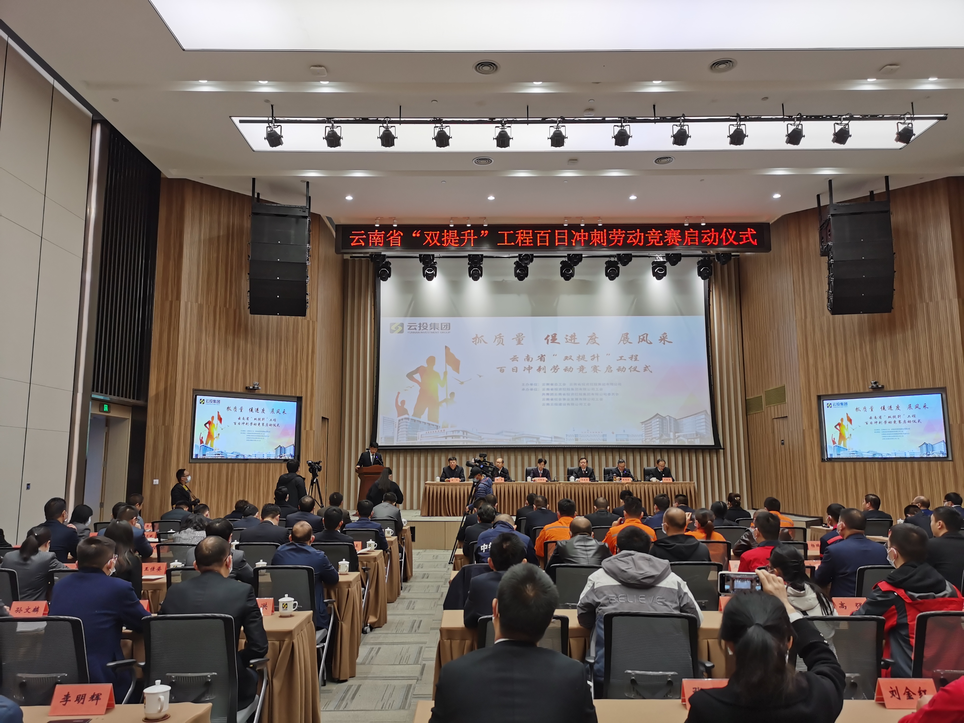 2月19日,由云南省總工會、云南省投資控股集團有限公司組織的云南省“雙提升”工程百日沖刺勞動競賽啟動儀式在云投集團召開,公司黨委副書記、副董事長、總經理彭云,黨委副書記、工會主席張欣,黨委委員、紀委書記付獻智,財務總監宋勇參加儀式。