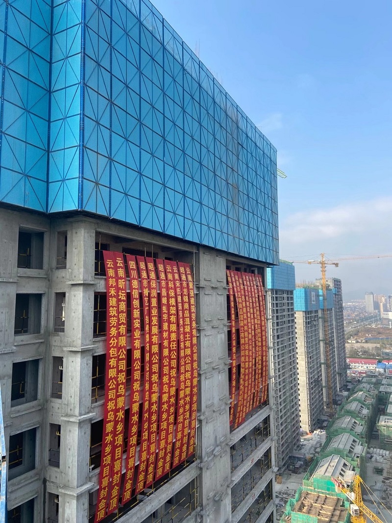 12月11日,伴隨著震耳欲聾的鞭炮聲,公司第一項目經(jīng)理部承建的昭通烏蒙水鄉(xiāng)項目(昭儲18-13號地塊)二標段實現(xiàn)了首棟主體封頂?shù)哪繕恕?/span>
