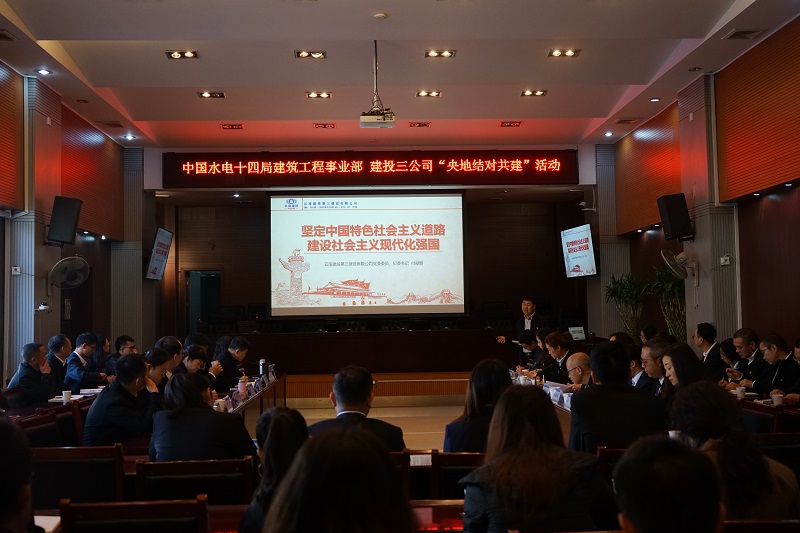 11月26日,三公司黨委與中國(guó)水電十四局建筑工程事業(yè)部黨委開(kāi)展了“融入中心抓黨建·服務(wù)大局謀發(fā)展”主題黨日活動(dòng),本次活動(dòng)在三公司機(jī)關(guān)大會(huì)議室舉行,十四局建筑工程事業(yè)部及三公司在昆領(lǐng)導(dǎo)班子出席會(huì)議,共54名黨員干部職工參加。
