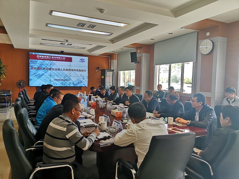 走訪結(jié)束后,調(diào)研組到公司二號(hào)會(huì)議室與公司管理人員進(jìn)一步交流,公司在昆領(lǐng)導(dǎo)參加會(huì)議。公司黨委副書(shū)記、副董事長(zhǎng)、總經(jīng)理彭云對(duì)考察組的到來(lái)表示衷心歡迎,并感謝墨江縣政府對(duì)公司墨江項(xiàng)目的支持與幫助,愿未來(lái)攜手同行,共同發(fā)展。鄭金雄對(duì)公司墨江公租房、“5.9”級(jí)災(zāi)后重建等項(xiàng)目的施工管理表示肯定與感謝,并介紹了墨江縣的基本情況,期待與公司進(jìn)行更多合作。