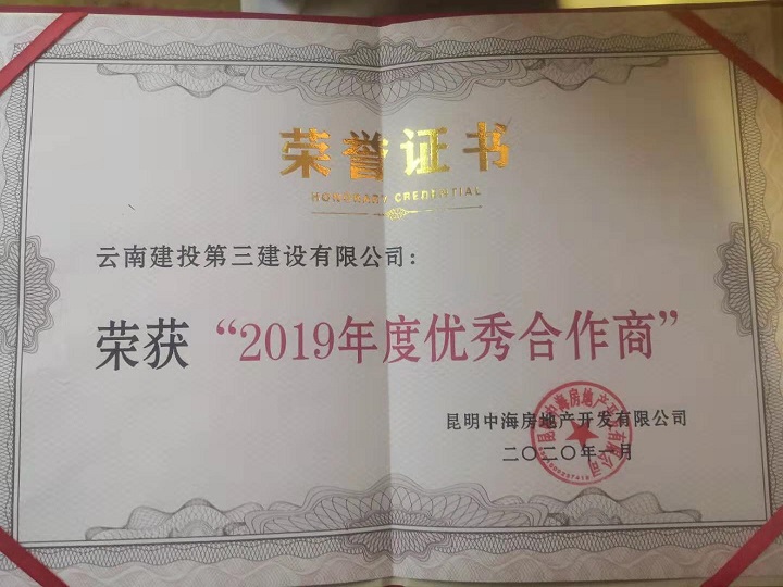 “昆明中海優秀合作商”稱號是公司與中海地產攜手同行、合作共贏的重要體現,更是知名房地產商認可與肯定,對提升“云南建投”品牌在當地建筑市場的影響力和良好的商業信譽大有裨益。