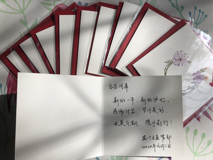 2020年1月2日,第十五直管項目部工會分別到各辦公室為職工送上了“臘八粥”、新年祝福賀卡和福字窗花,送去了新年慰問。