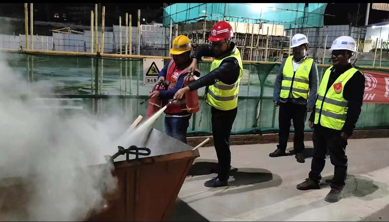 項目部緊扣“預防為主 生命至上”的主題,認真制定應急演練方案,安排人員講解如何樹立公共消防意識、如何預防杜絕可能引發消防事故的內外隱患、個人面對突發火災事故應如何進行救災及逃生等,讓消防安全觀念深入大家內心,并組織現場管理人員實際操作滅火器等消防工具。