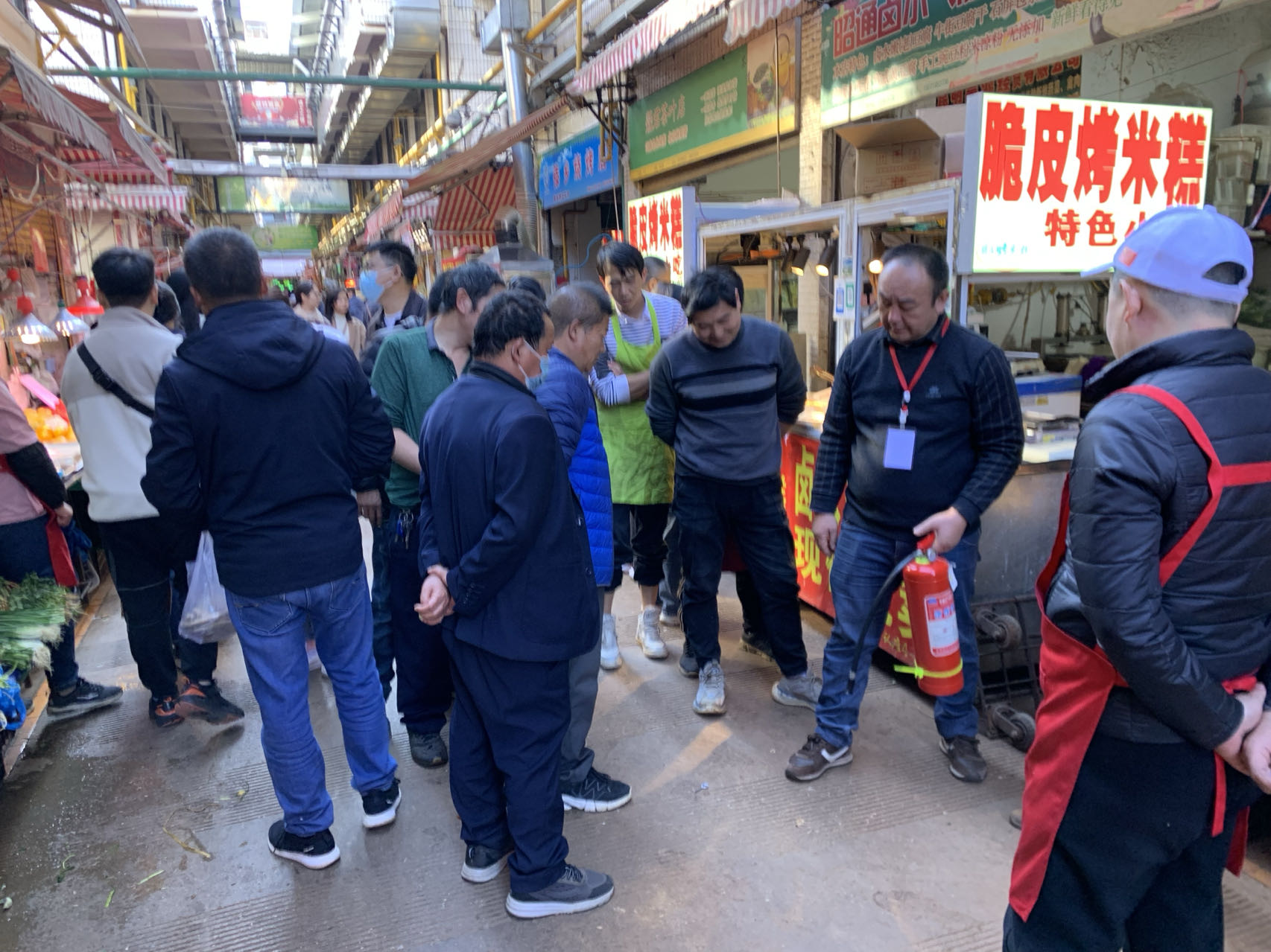 會后,資產運營管理部還組織商戶集中觀看了燃氣安全警示教育片,并安排市場管理人員挨家挨戶上門培訓消防器材使用技能,讓每一位商戶熟悉滅火器使用流程并熟練掌握,指導不熟練的商戶反復練習直至熟練,確保人人都會正確使用滅火器。