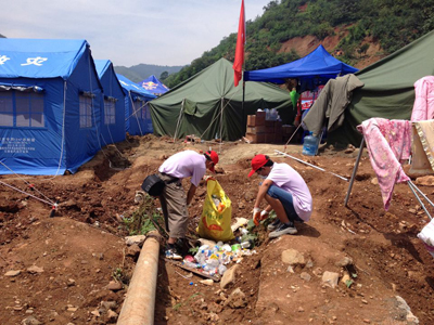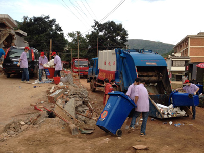 8月8日,公司第十八直管部昭陽區(qū)2012年保障房執(zhí)行項目經(jīng)理熊克勝帶領(lǐng)直管部職工、勞務(wù)公司等在昭共22人趕赴魯?shù)榈卣鹨痪€龍頭山鎮(zhèn),在集團及鄉(xiāng)投昭通分公司的統(tǒng)一帶領(lǐng)安排下,進行了4個工作日的集鎮(zhèn)及安置點的保潔工作,對控制細菌滋生及疫情爆發(fā)起到了一定的作用。