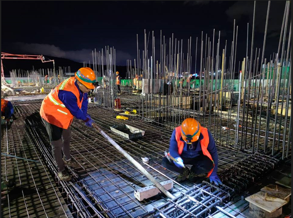 不放過任何一點偏差,嚴格把好質量關。夜幕降臨,隱約看到安全帽和反光背心在躍動,項目管理人員不畏嚴寒,堅守崗位,只為趕超春節前施工至正負零的節點目標。