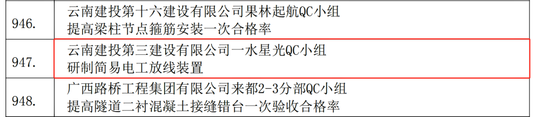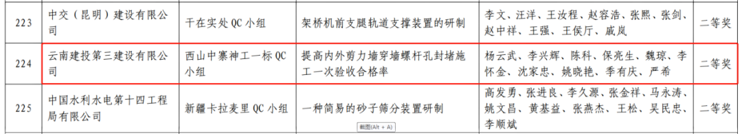 除此之外,中國建筑協會、云南省建筑業協會、云南省市政工程協會先后發布了2022年度優秀QC成果獲獎名單,公司17個QC成果均獲獎。