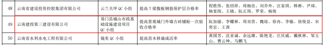 除此之外,中國建筑協會、云南省建筑業協會、云南省市政工程協會先后發布了2022年度優秀QC成果獲獎名單,公司17個QC成果均獲獎。