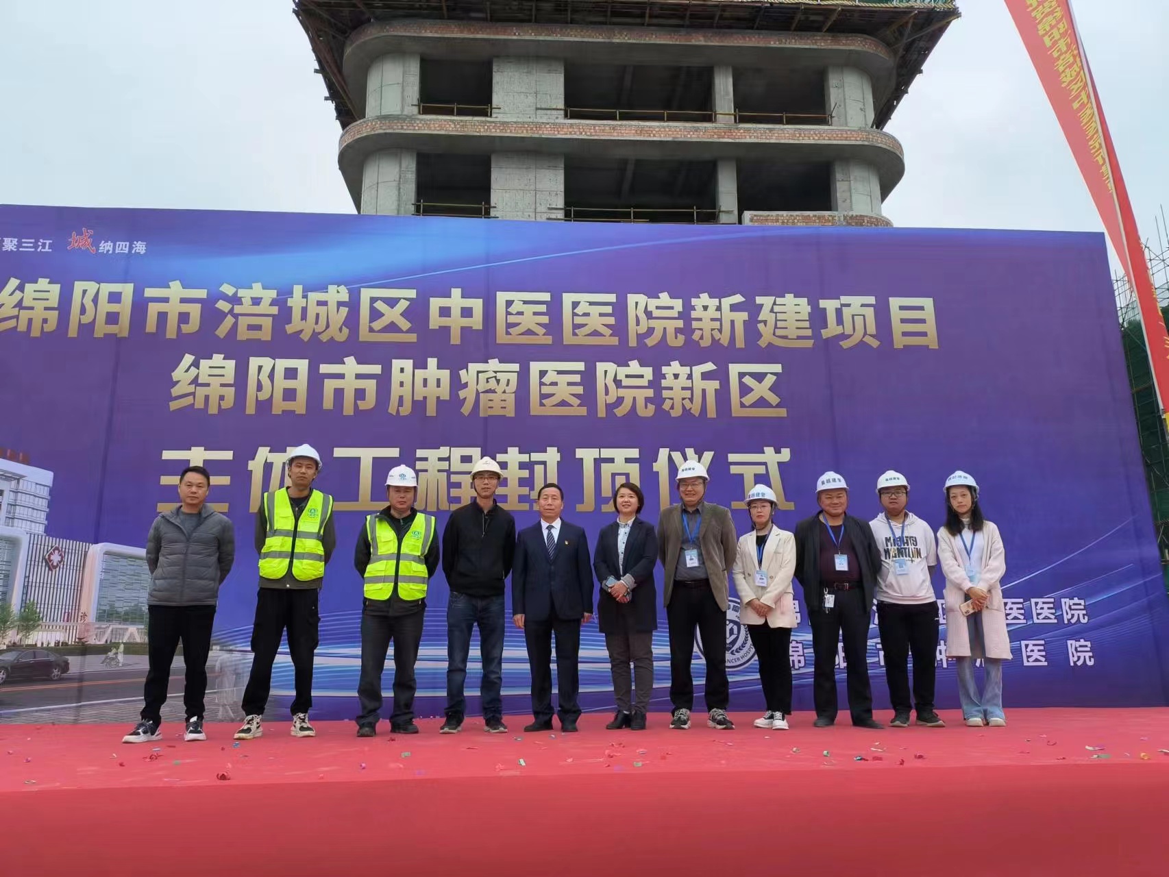 10月11日上午,施工現場,彩旗飄飄,鞭炮齊鳴,掌聲雷動,在大家共同見證下,隨著住院樓屋面板最后一方混凝土澆筑完成,由省外事業(yè)部承建的綿陽市涪城區(qū)中醫(yī)醫(yī)院新建項目順利封頂。