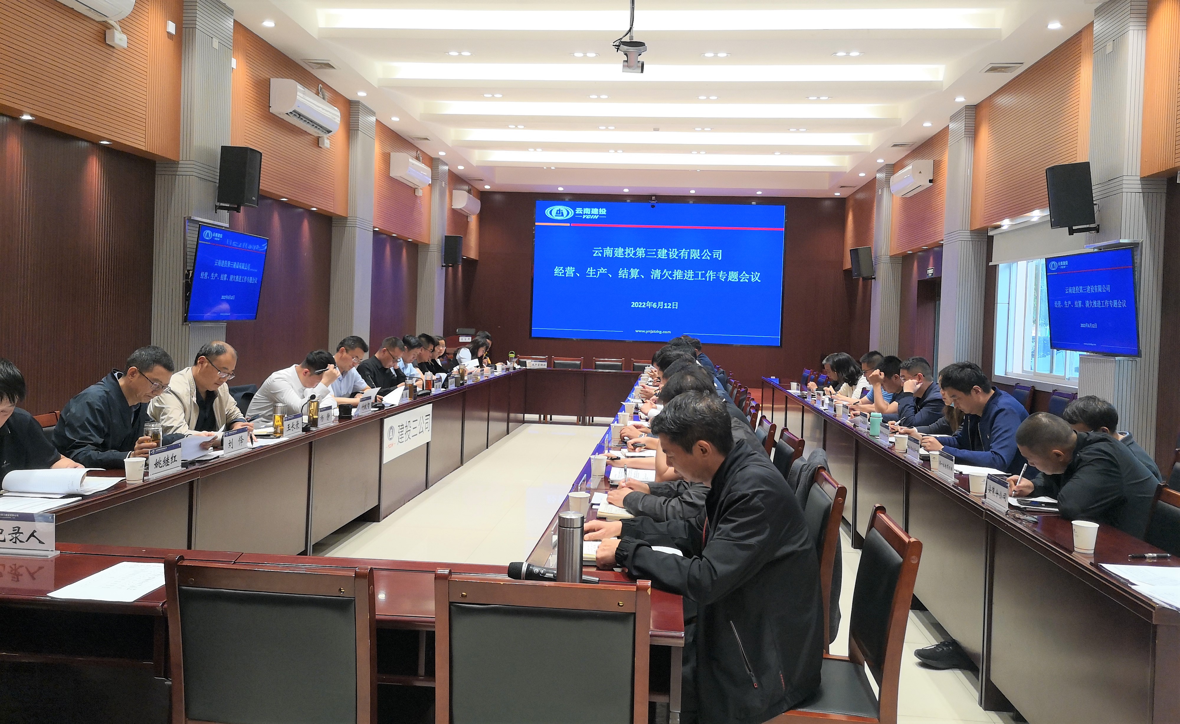 6月12日,公司在一號會議室召開經營、生產、結算、清欠推進工作專題會,公司在昆領導班子成員,市場開發部、生產管理部、成本管理部、財務部及各基層單位負責人共40余人參加,會議由公司黨委委員、副總經理(主持經理層工作)李騫主持。