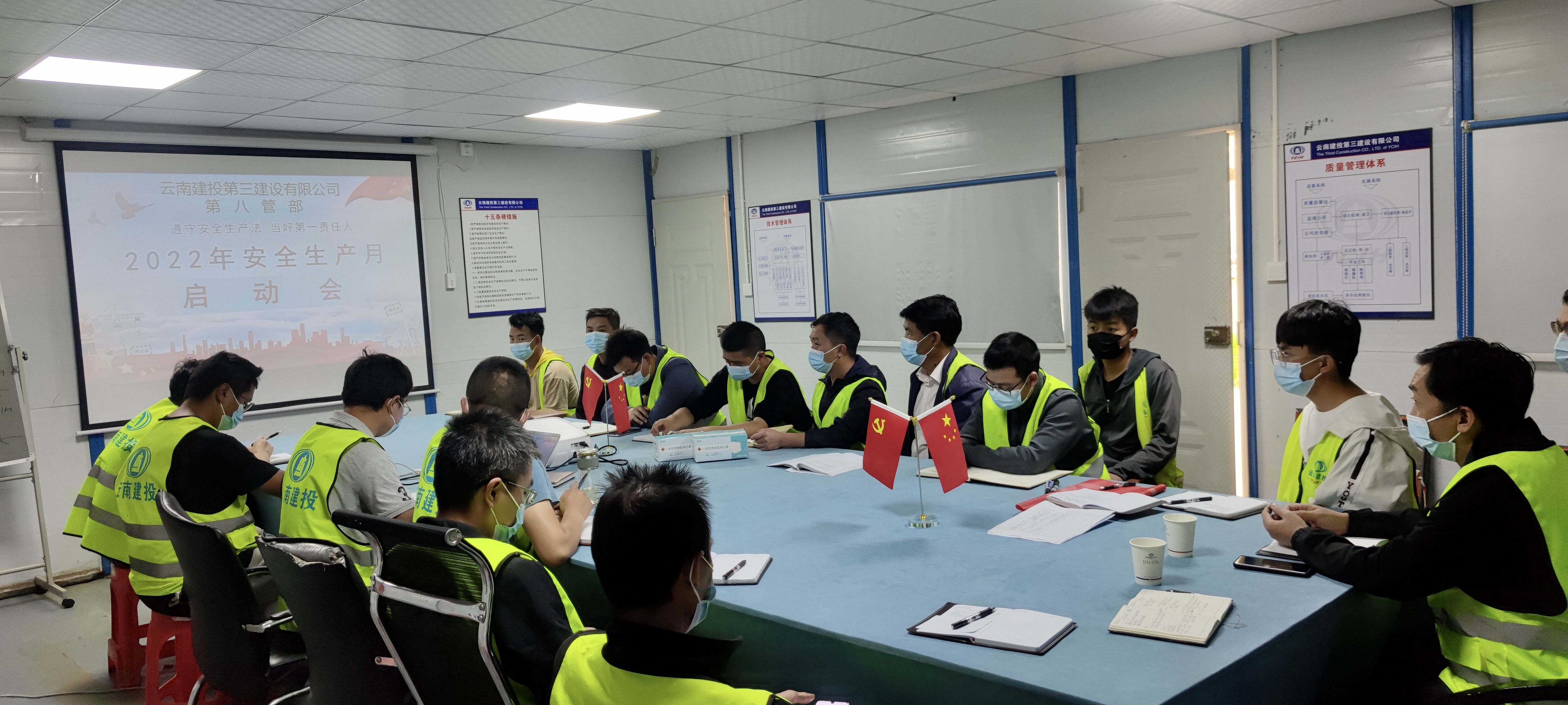 6月2日,第七直管項(xiàng)目部在直管部會(huì)議室以視頻會(huì)議的方式組織召開2022年“安全生產(chǎn)月”啟動(dòng)儀式,各在建項(xiàng)目職工、勞務(wù)班組參會(huì)。