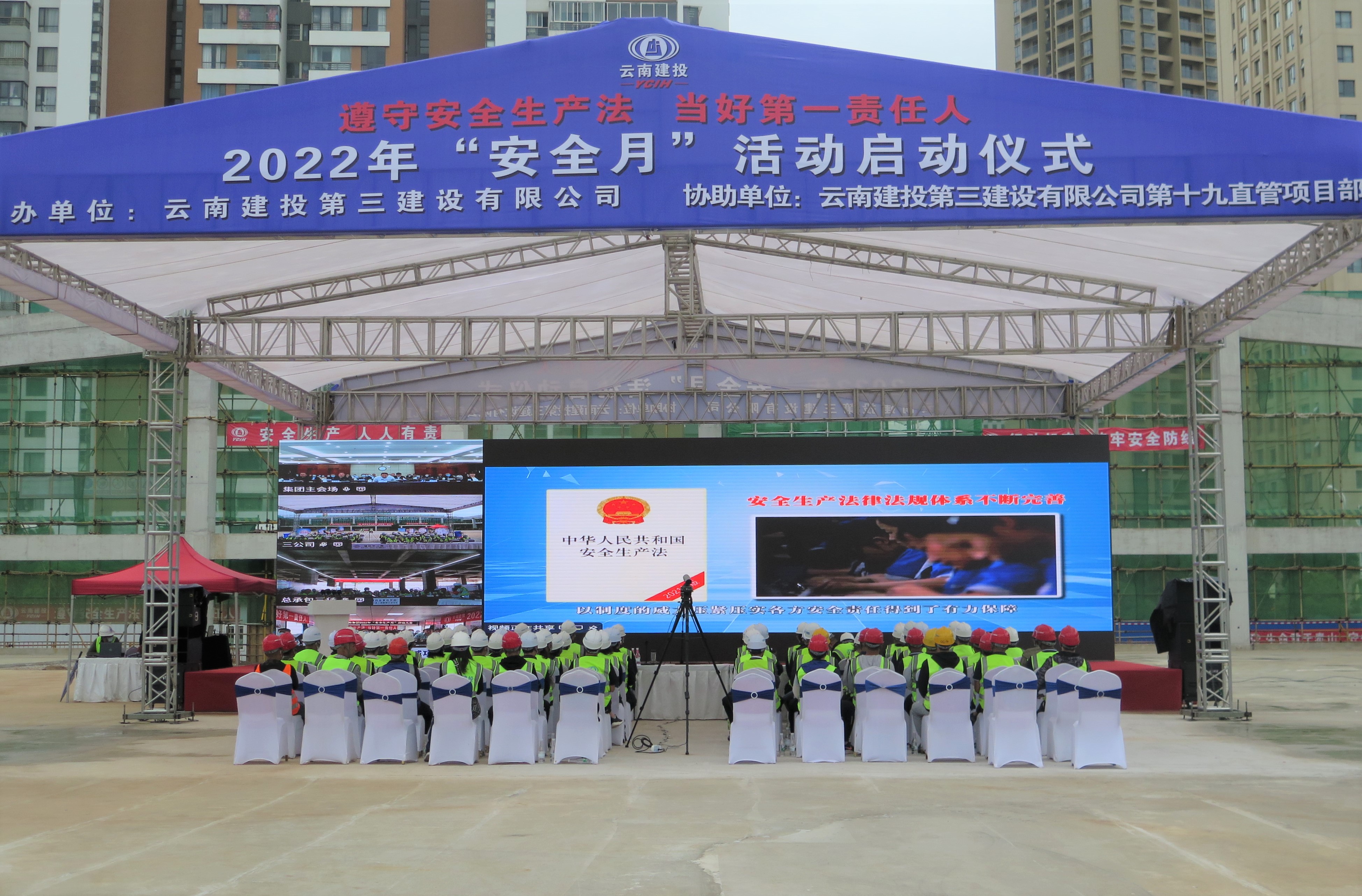 5月31日,公司在第十九直管項目部承建的昆明卷煙工商物流一體化建設項目舉行2022年“安全生產月”活動啟動儀式。公司在昆領導班子成員、各職能部門負責人、各基層單位經理共40余人參加。會議以視頻連線的方式召開,主會場與32個分會場同時進行,會議由公司副總經理楊靜主持。