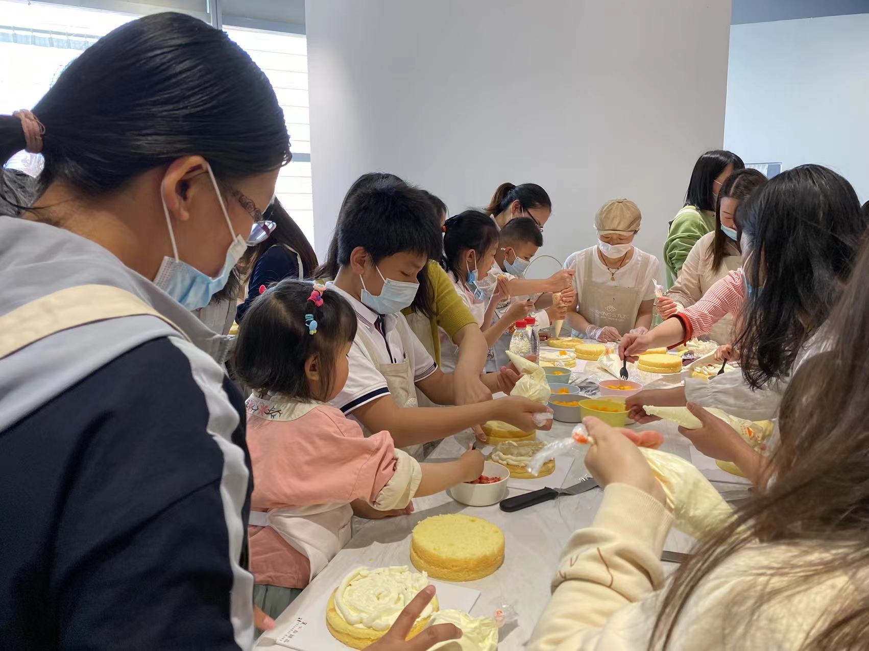 活動現場,培訓師為大家現場講解并演示蛋糕的制作步驟,同時介紹了烘焙健康食材的標準;手把手教授大家如何做出花樣圖案等技巧。在老師的指導下,孩子們盡情發揮著自己的想象力和創造力,認真地給蛋糕抹著奶油,用心設計造型。媽媽們則在一旁幫忙,或拍下孩子認真制作的可愛模樣,記錄美好時刻。