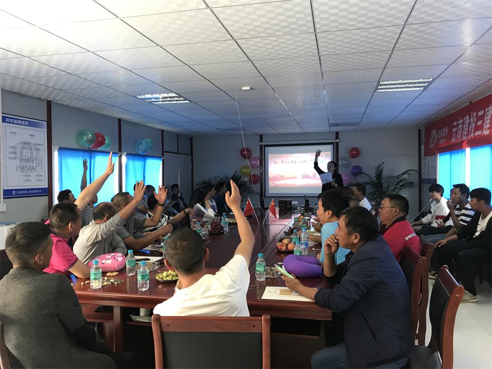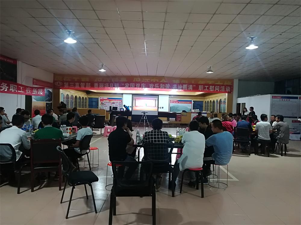 “起來不愿做奴隸的人們,把我們的血肉筑成我們新的長城……”在嘹亮的國歌聲中,第五直管部馬龍龍翔中學項目部“慶國慶,迎中秋”雙節(jié)同慶職工慰問活動拉開了序幕。??9月29日下午,在馬龍龍翔中學項目部會議室,大家圍坐桌前,共同欣賞由公司工會攝制的職工文藝匯演節(jié)目,期間項目部同事還組織了有趣的猜謎活動“白白的,硬硬的,燒過還是...