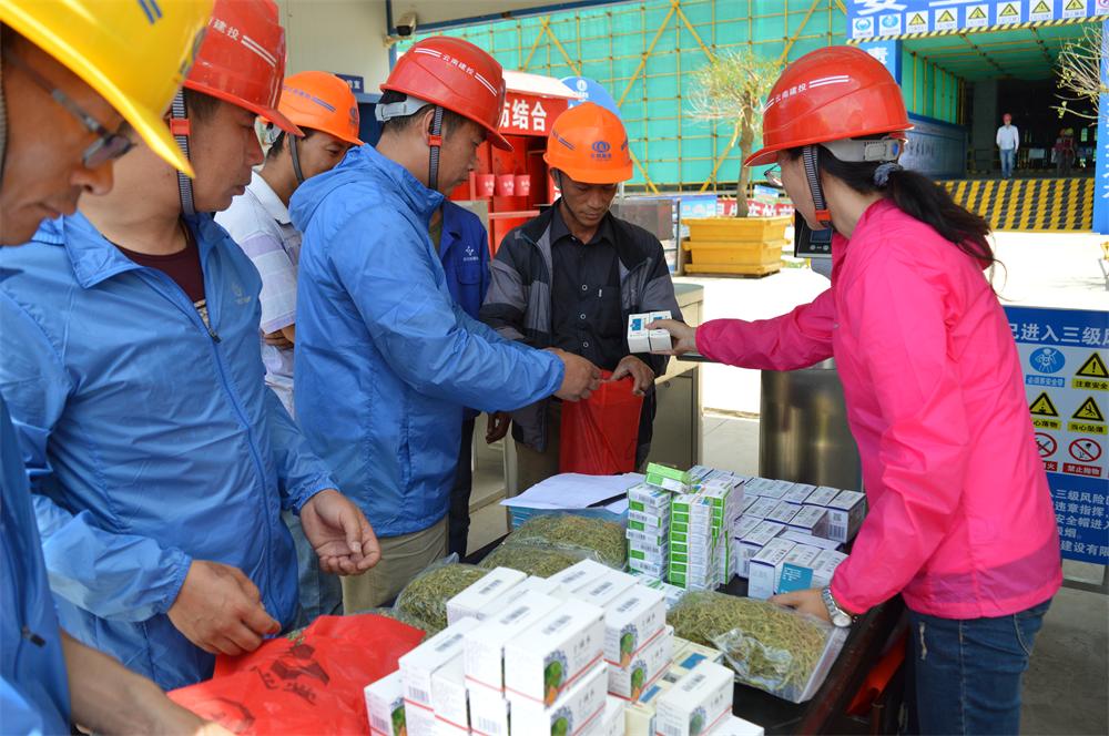 第二直管部為職工給農(nóng)民工班組發(fā)放防暑降溫用品
