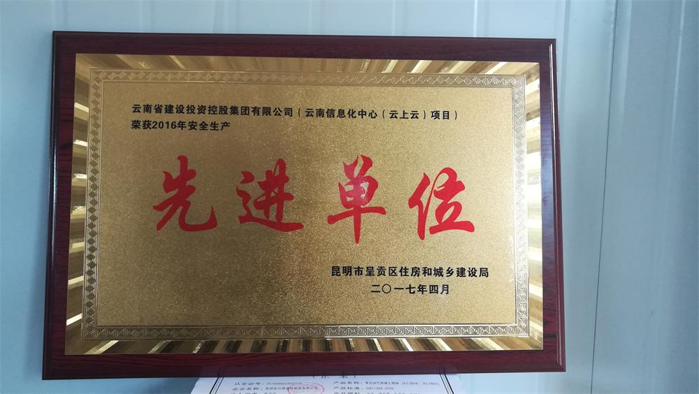 第四項目部云上云項目昆明市呈貢區“2016年安全生產先進單位”