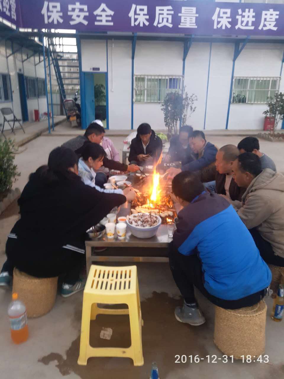 1月1日,公司第十五直管項目部玉溪市2014年限價商品房項目在生活區(qū)組織自助燒烤慶元旦活動。活動中,項目部人員職責(zé)分工明確,男同志負責(zé)食材采購,女同志負責(zé)食材的清洗和前期制作,大家圍坐在一起自助燒烤,迎接著2017年的到來。通過在火塘邊的嘮嘮家常,交流談心,讓員工與直管部更加融入到了一起,為公司2017年的跨越發(fā)展奮勇...