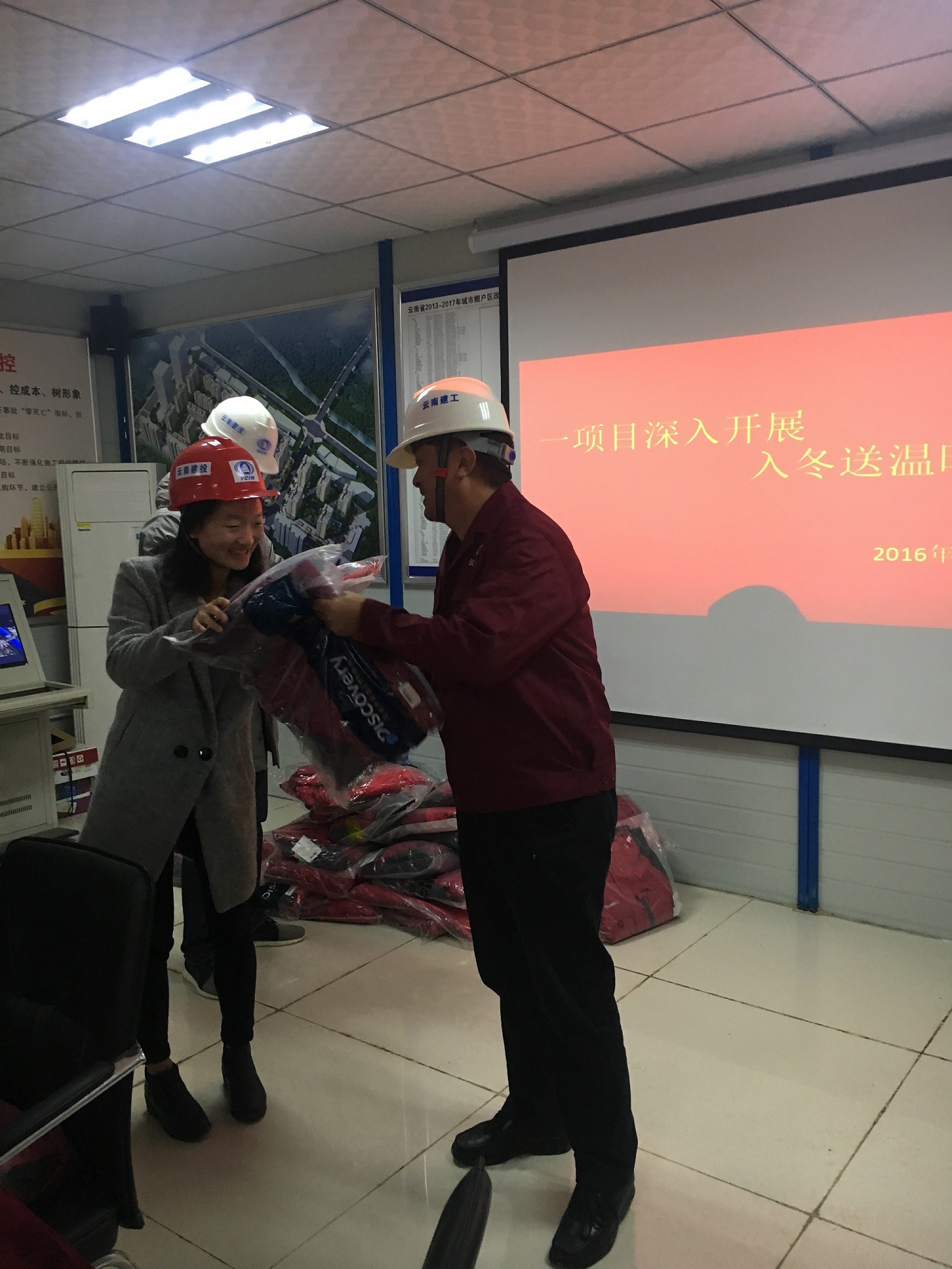 11月09日,公司第一項目經理部經理姚繼紅代表項目班子慰問奮斗在昭通荷花和平項目生產一線的職工,并為全體管理人員發放沖鋒衣等御寒衣物和用品。立冬剛過,昭通市已提早進入冷冬,荷花和平項目所在地昭陽區近期最低氣溫降至2度。為促生產,抓質量,保工期,現場管理人員克服困難,奮戰在施工現場。本次活動給寒冷的項目現場帶來了溫暖,也...