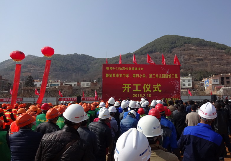 公司魯甸“8.03”災后恢復重建項目二期工程崇文中學、第四小學、第三幼兒園舉行開工儀式