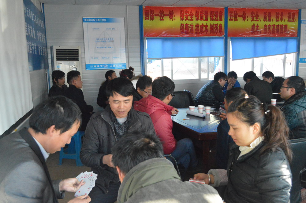 為慶祝春節的到來,豐富職工文化生活,增進職工間的交流與友誼。2月3日,公司第四項目經理部全體職工在理工大學津橋學院項目現場舉辦了迎新春撲克雙扣比賽。比賽根據抽簽組隊,采取淘汰制,共分10?組,各參賽選手本著“友誼第一、比賽第二”的宗旨,嚴格遵守比賽規則,聚精會神、默契配合、謹慎出牌。整個比賽過程氣氛活躍,參賽者和旁觀者...