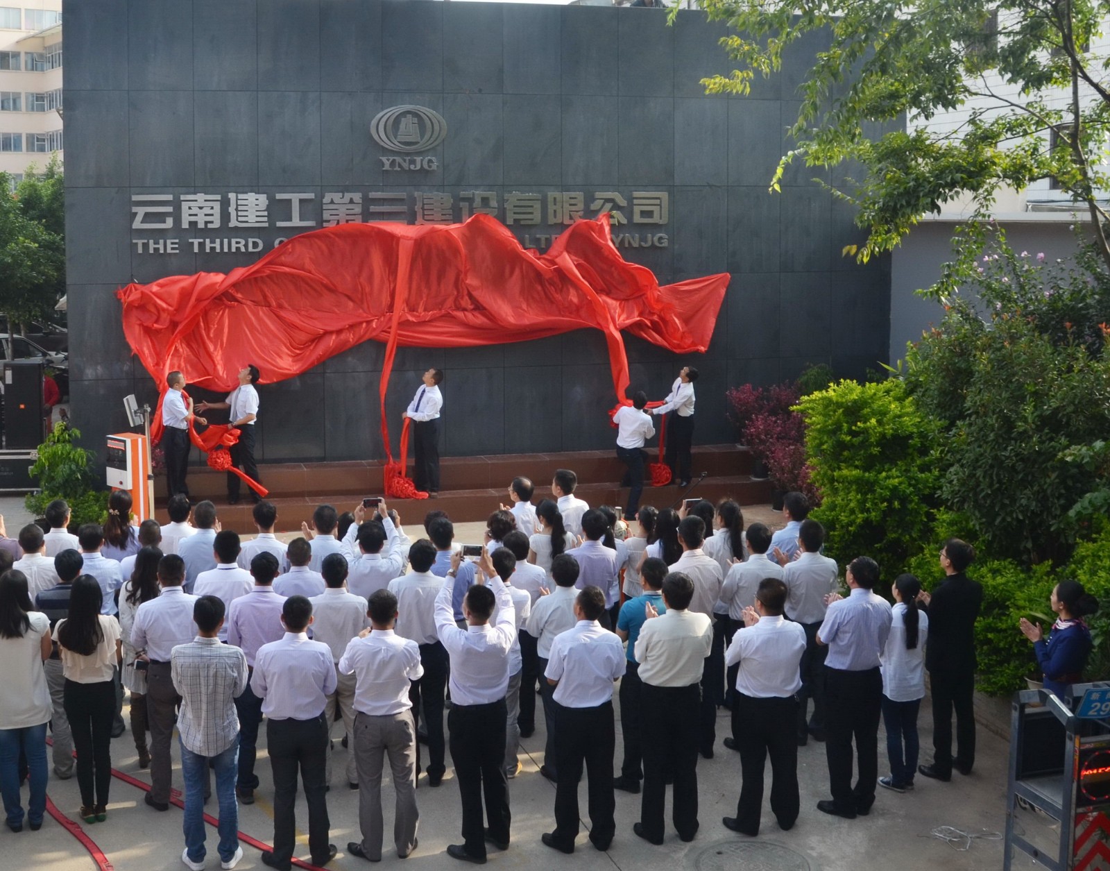 ??清脆洪亮的鞭炮聲響起,明快嘹亮的音樂響起,橫亙在深灰黑色墻面中央的紅色帷幕飄揚落下,“云南建投第三建設有限公司”幾個大字赫然出現在眾人眼前,這一刻,所有人的眉間、眼角、嘴角都溢滿了歡笑......7月10日上午,公司舉行了短暫而隆重的改制揭幕儀式,集團公司黨委副書記、紀委書記張戰國出席儀式,公司董事長龔樹華、黨委書...
