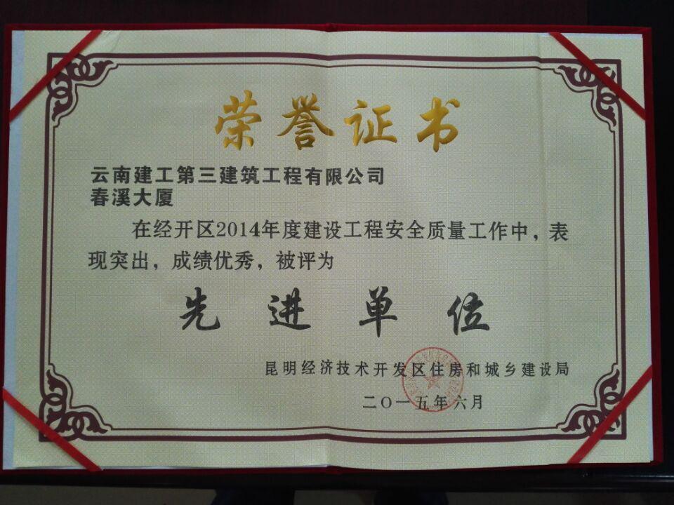 公司春溪大廈項目榮獲經開區先進單位稱號