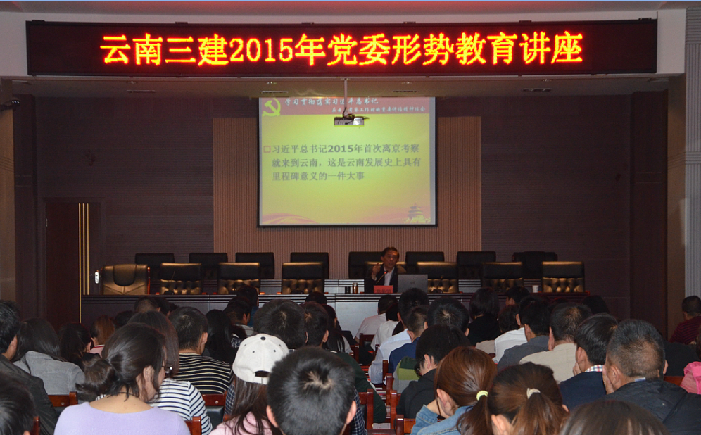 ??3月20日下午,三公司邀請中共云南省委宣講團成員,中國云南省委黨校云南行政學院歐黎明教授,作題為《學習貫徹落實習近平總書記在云南考察工作時的重要講話精神體會》的形式教育講座。 歐黎明對習近平總書記的講話內容分四塊進行闡述:一是充分認識習近平總書記重要講話的重大意義;二是深刻領會習近平總書記重要講話的思想內涵和精神...