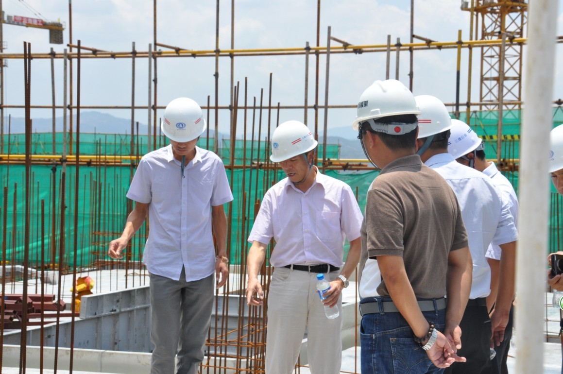 ?7月14日下午,由公司十五直管部承建的玉溪市中心城區火車站片區2012年公共租賃房建設項目在施工現場組織開展鋁模板施工工藝觀摩會,公司董事長唐忠鴻帶領公司中層以上領導班子50余人參加觀摩活動,通過現場觀摩直觀地了解了鋁模板的施工工藝定型化的做法。??觀摩過程中,唐忠鴻認真聽取了項目人員對工程進展及鋁模板施工工藝的匯報...
